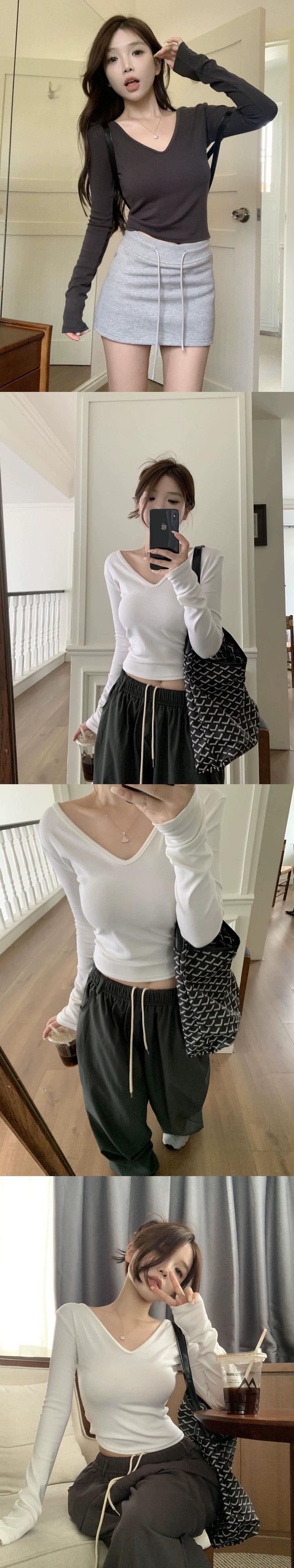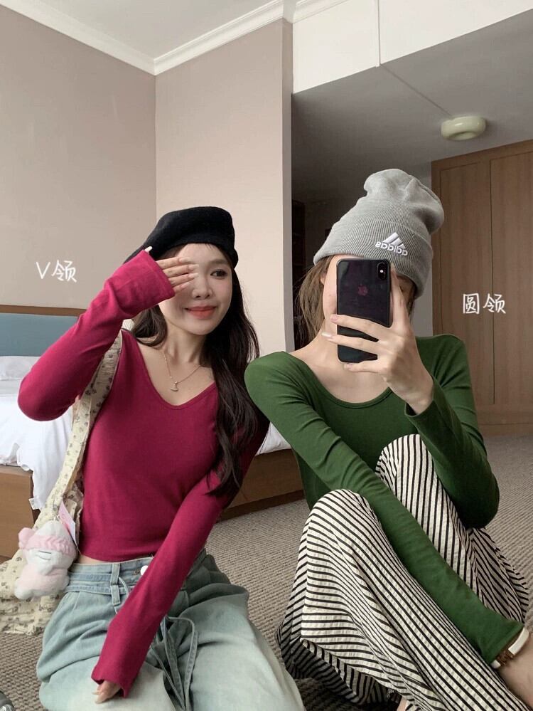 前後二着 V ネック長袖ボトム T シャツ女性 2024 春の新作純粋な欲望痩身と多目的インナートップ ロング スプリング 春物 Vネック Tシャツ ピュア 0921926830166989