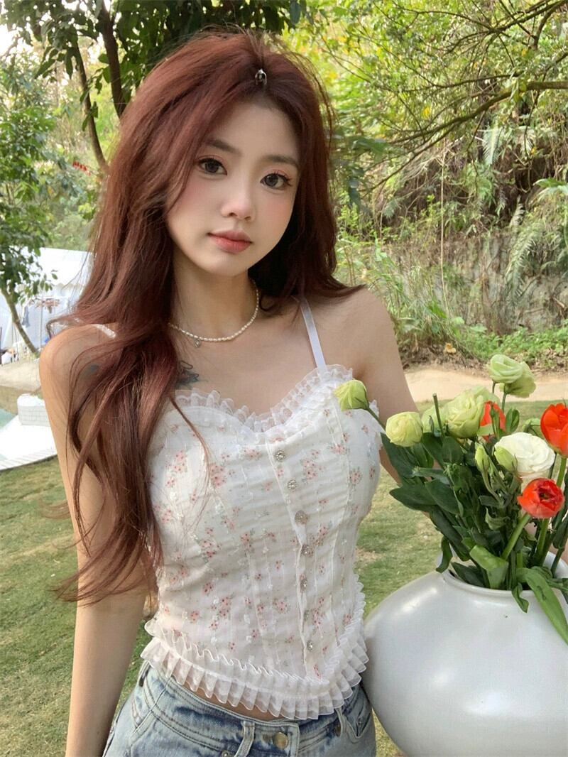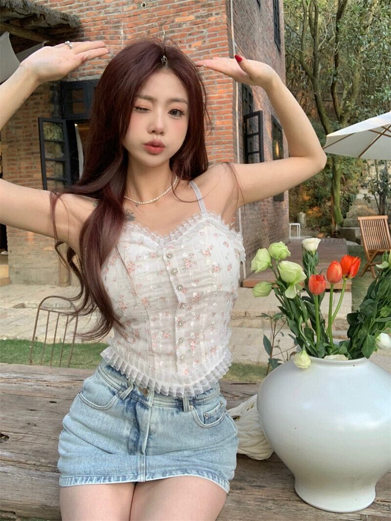 ピュアラスト スイートスタイル 花柄レース キャミソール レディース 春 半袖 ノースリーブ トップス ショート 大人ガーリー スウィート キュート カジュアル スプリング 春物 0921975741445885