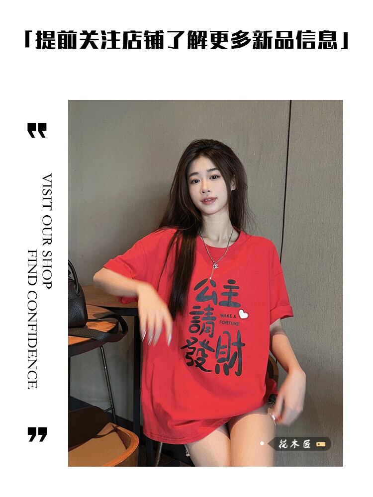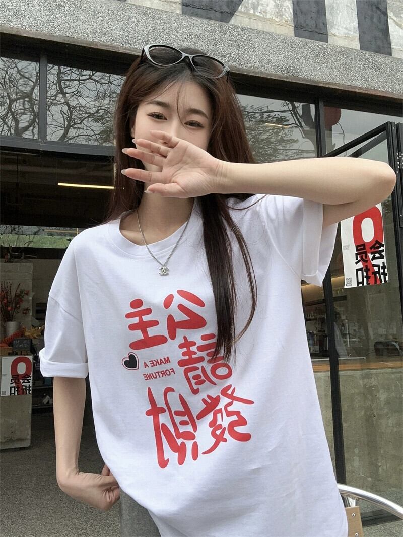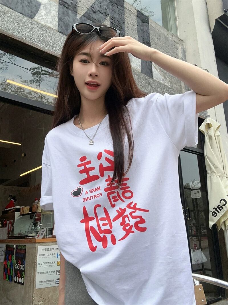 多用途老化防止ラウンドネックプリント半袖 Tシャツ女性の 2024 年春の新しい気質ミドル丈ルーズ痩身トップ スプリング 春物 Oネック 0921978093965839