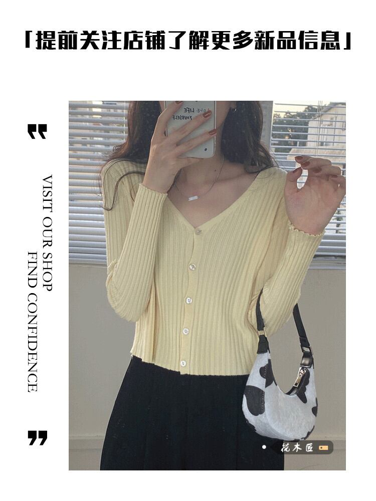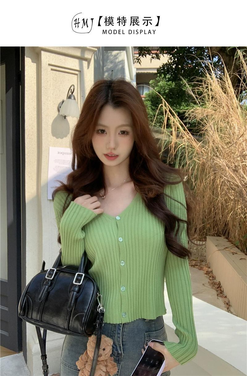 小さな V ネック長袖セーター女性春 2024 新しい気質ショートスタイルルーズでスリムなカーディガントップトレンディな ロング スプリング 春物 Vネック 0921969829216878