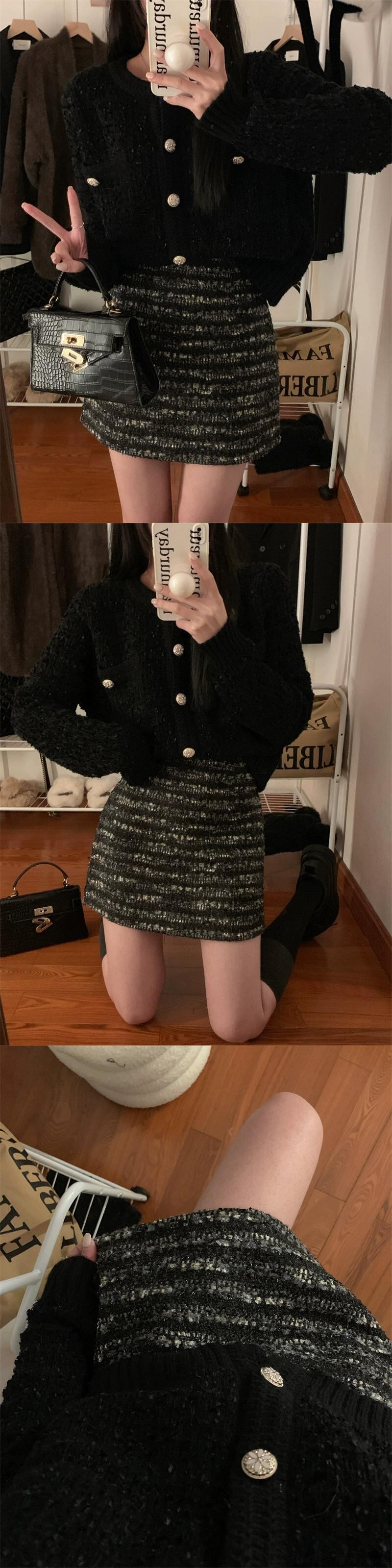ファッションスーツの女性の春 2024 新しい長袖ニットカーディガン痩身ツイードスカート 2 点セット ロング スプリング 春物 0921936904842376