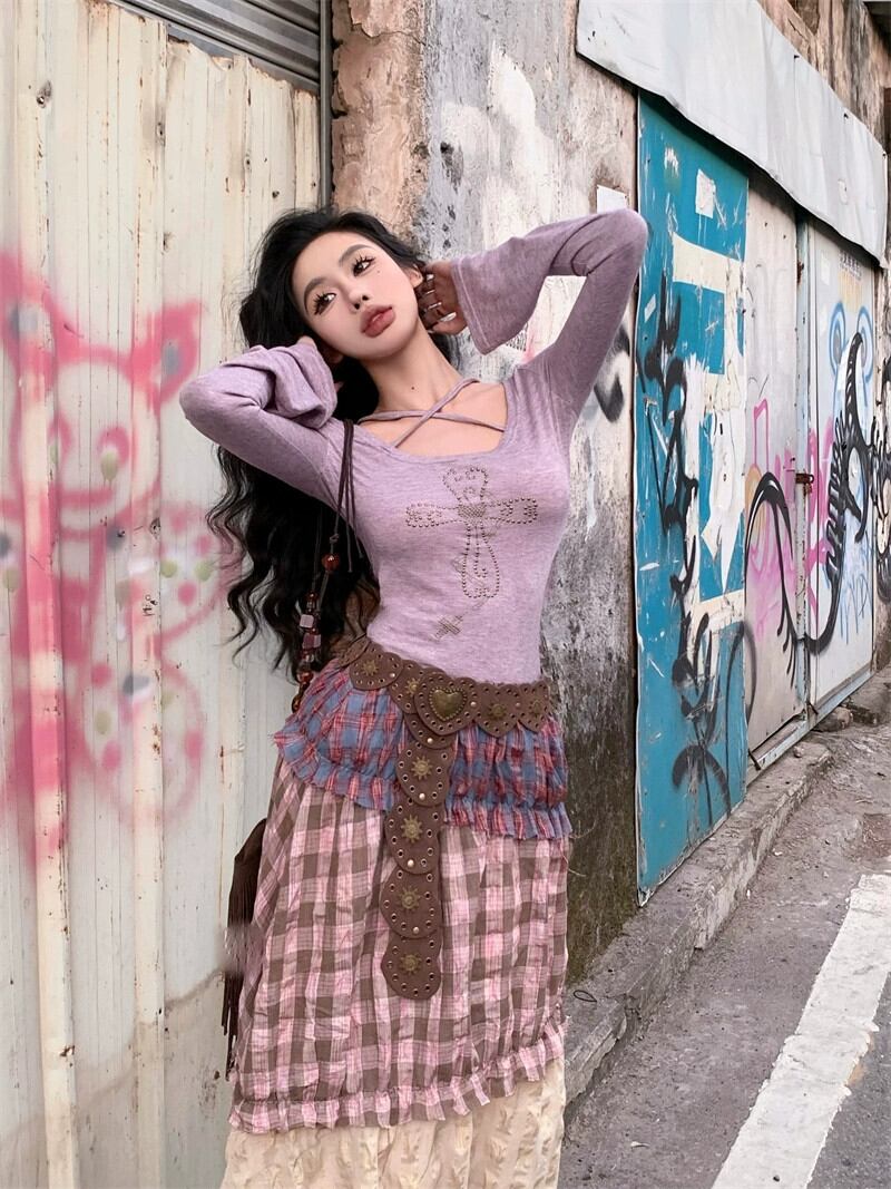 ニッチレトロファッションスーツ女性の 2024 春の新しいプリントトップコントラストカラースカートパーソナライズされたベルト 3 点セット スプリング 春物 ハーネス 0921997516664058