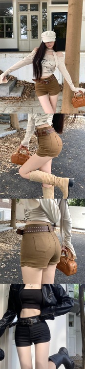 有能なタイトフィットで多用途なハイウエストカジュアルパンツ女性 2024 年春の新しいスリム A ラインセクシーなヒップカバーショーツ スプリング 春物 ブルマー Aライン 0921963862096753