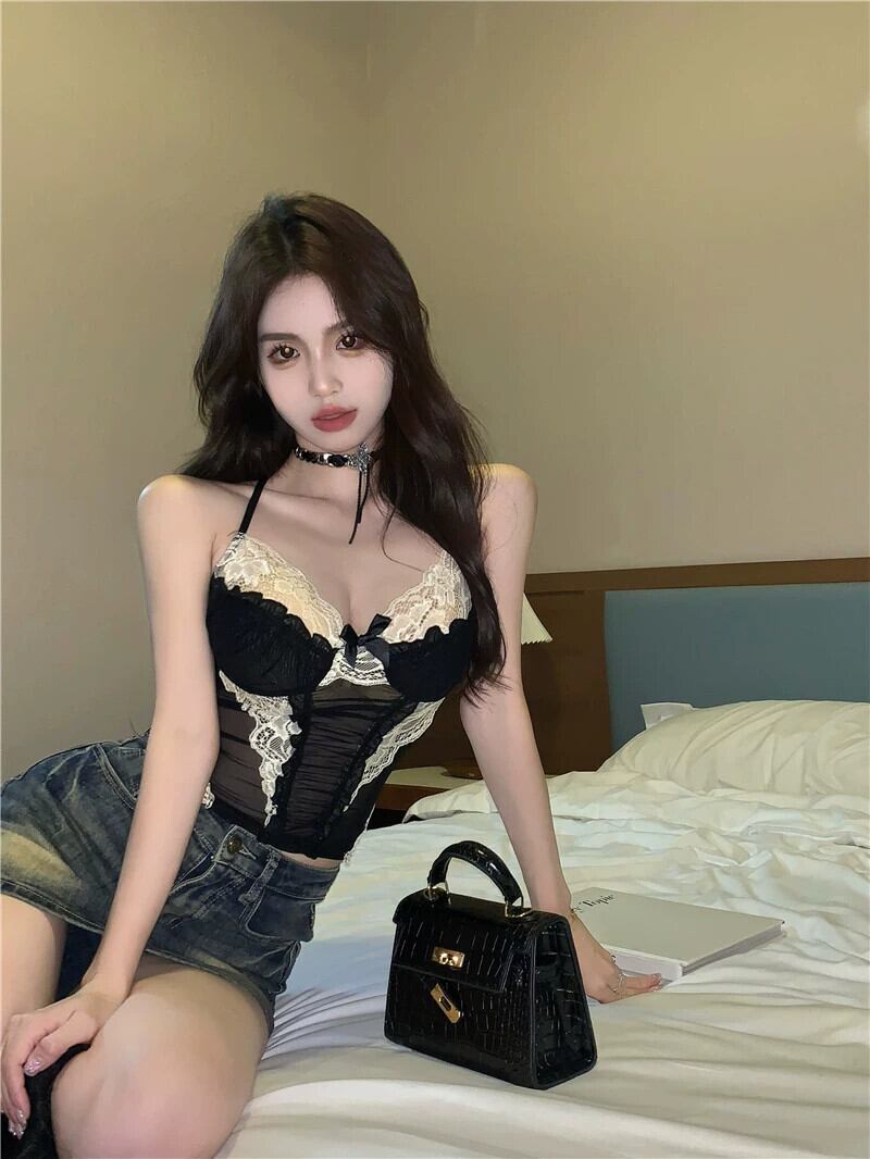 リボンレースキャミソールレディース2024春新作スリムショートインナーボトムストップス スプリング 春物 0921934531260218