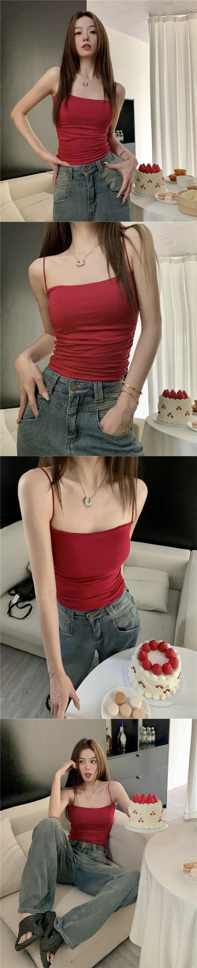 ホットプリーツ純粋な欲望美しいバックキャミソール女性の 2024 年春の新しいスタイルのインナーウェア痩身底ショートトップ スプリング 春物 ピュア 0921982467782086