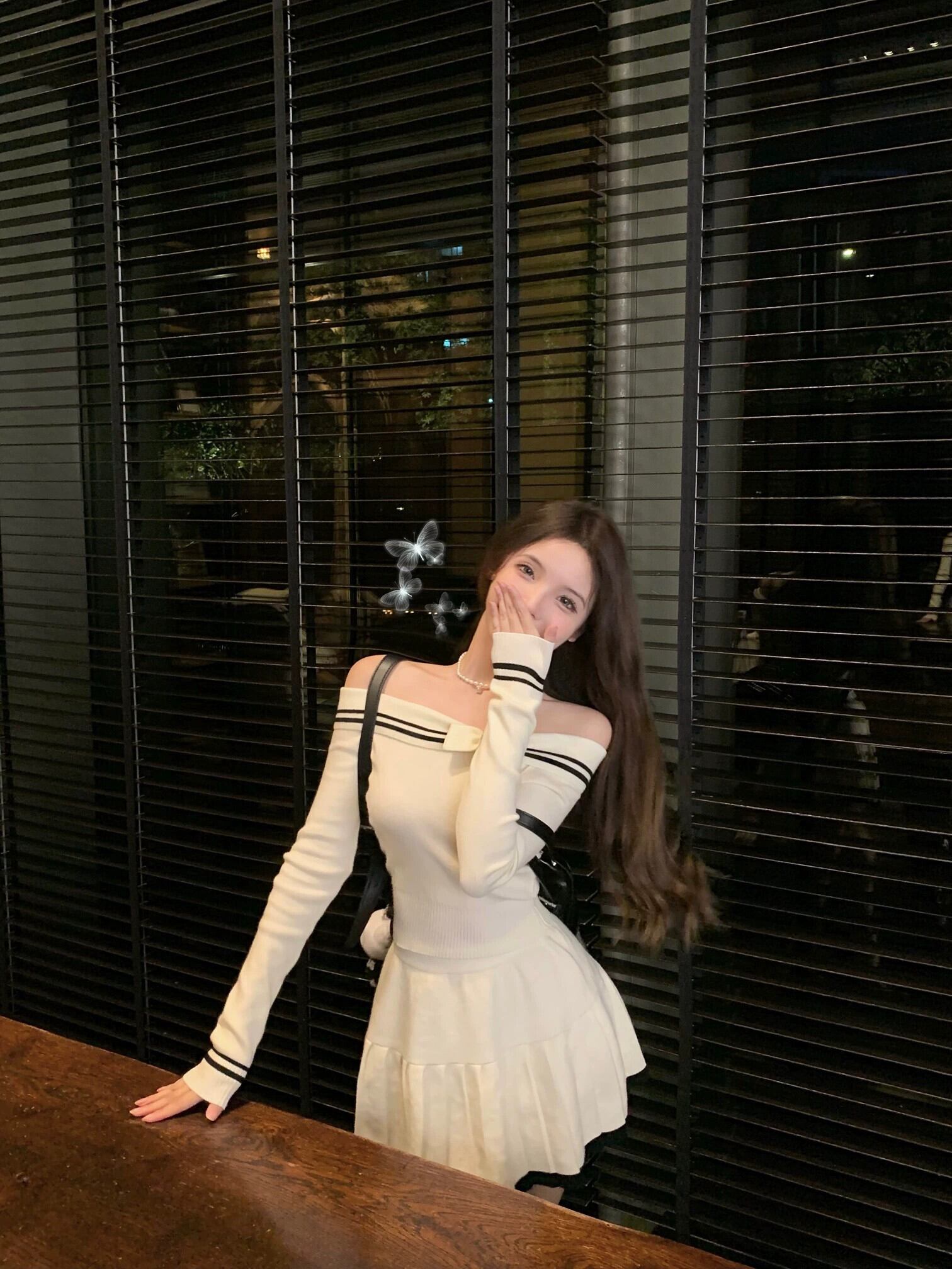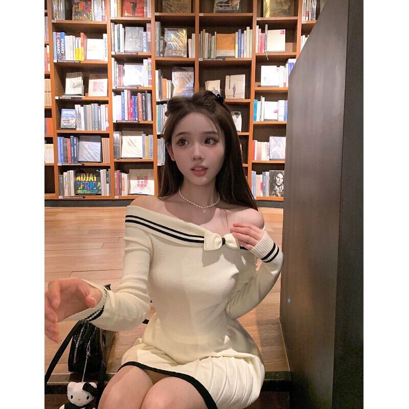 スタイルファッショナブルなニットスーツの女性の春 2024 新しいワンピース襟長袖トップ痩身スカート 2 点セット ロング スプリング 春物 0921972773049455
