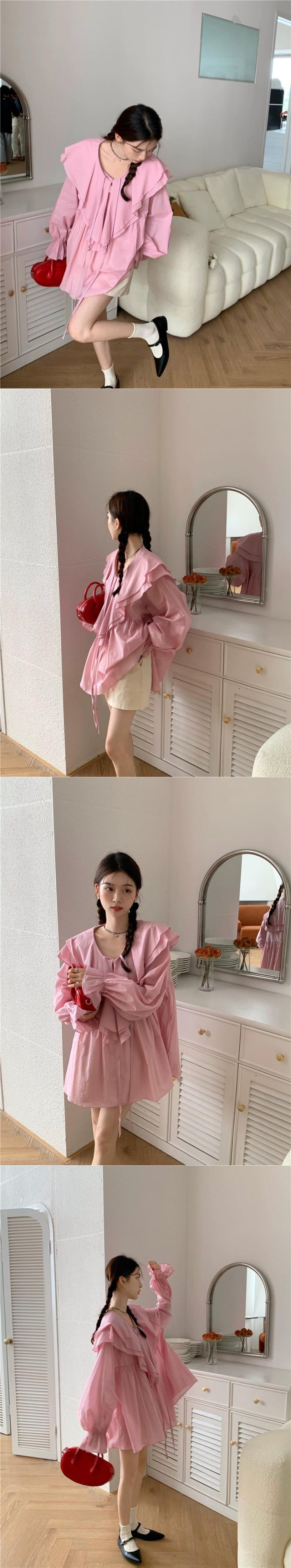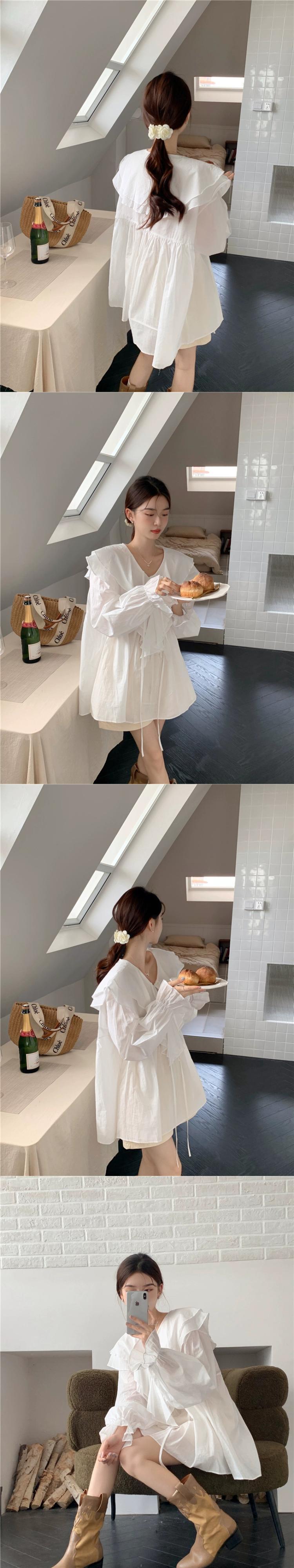 甘いフリル V ネックドレス女性 2024 春の新しいスタイルのトランペット長袖多用途ルーズ A ラインスカート ロング 大人ガーリー スウィート キュート カジュアル スプリング 春物 Vネック Aライン 0921934038402054