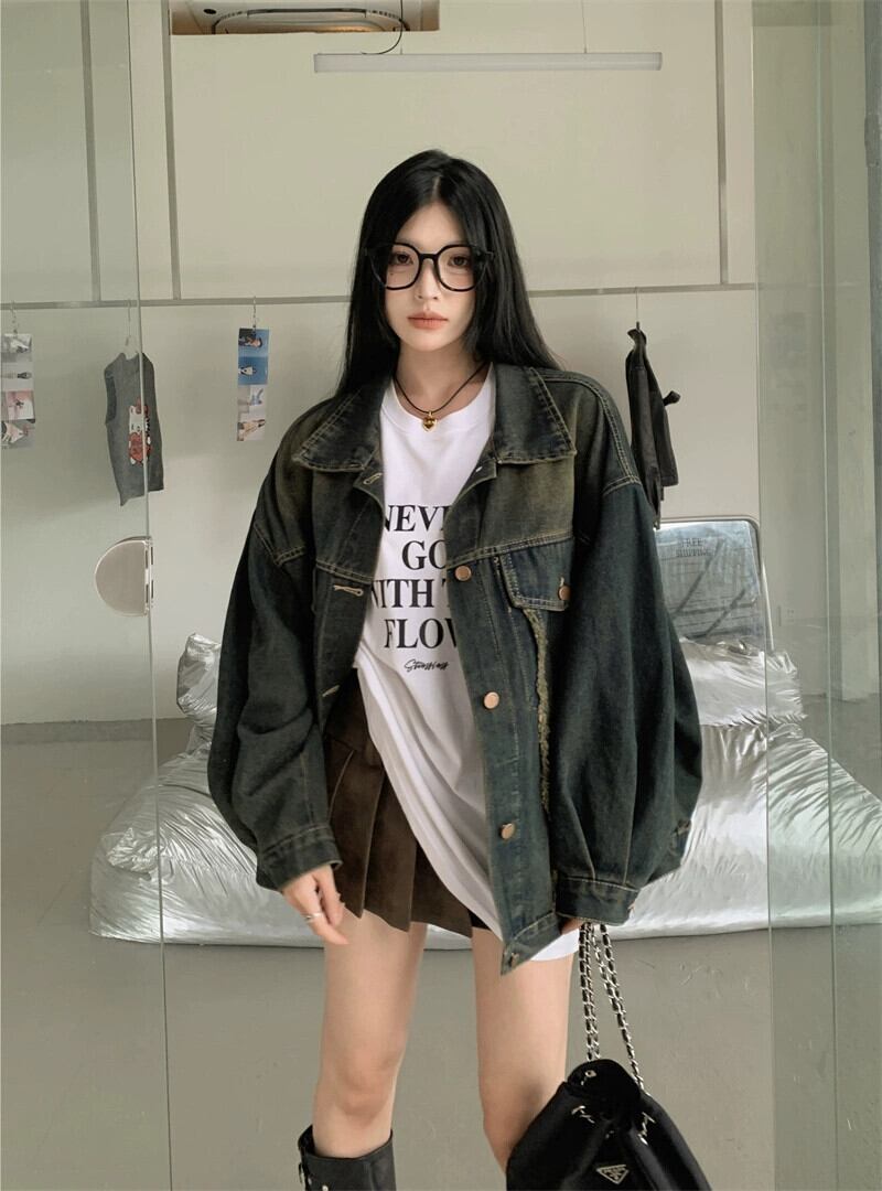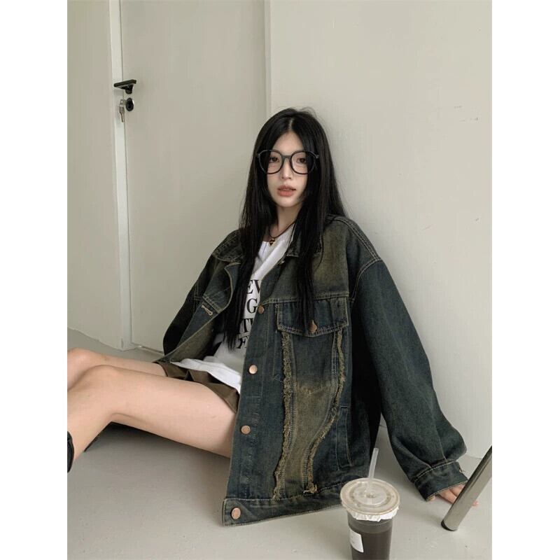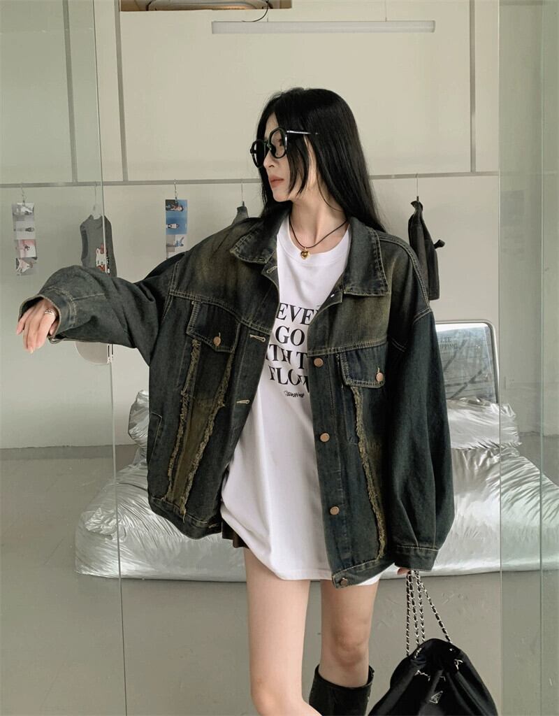 レトロなダメージウォッシュ加工のローエッジデニムジャケットの女性の 2024 年春の新しいファッションニッチルーズで多目的なトップ スプリング 春物 0921958049011692