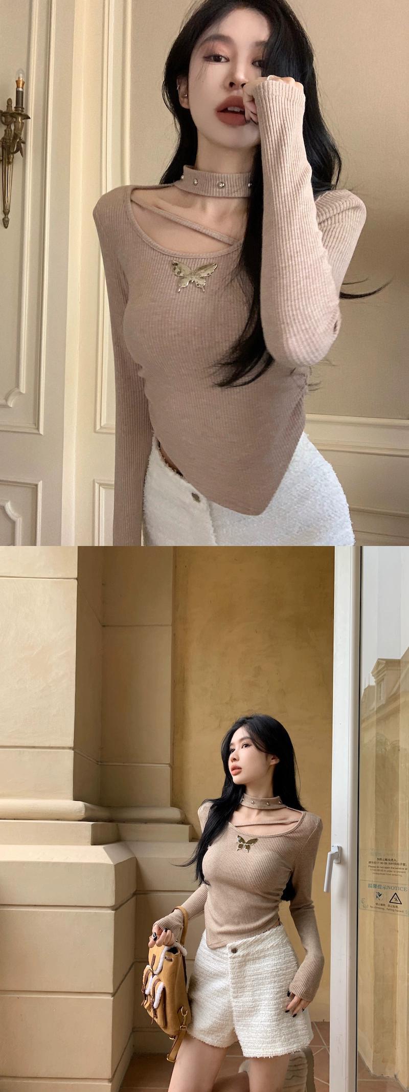 甘い不規則なホルターネック肩パッド Tシャツレディース 2024 春の新作スリムフィットインナー重ね着シャツトップ 大人ガーリー スウィート キュート カジュアル スプリング 春物 0921996471561491