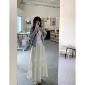 優しいスタイルのスーツの女性の春 2024 新しいニットセータージャケットレーストリムサスペンダースカート 3 点セット スプリング 春物 092198275615808