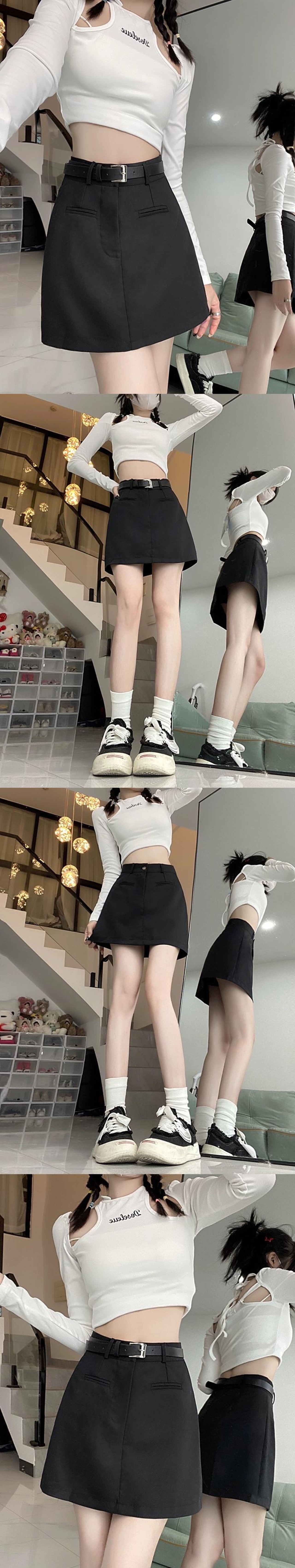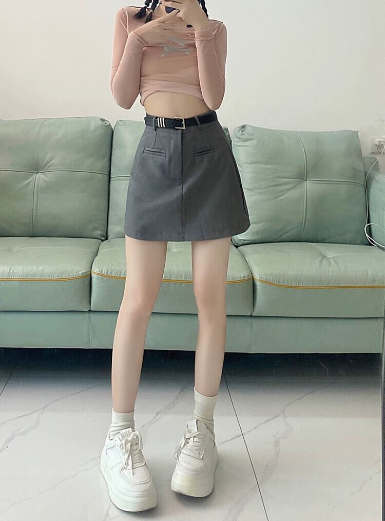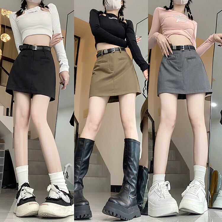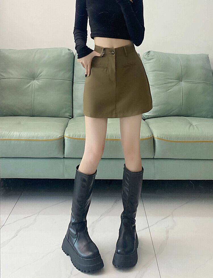 春のアメリカンコーヒー色のヒップ抱きスカートレディース。ニッチなデザインの小さめのハイウエストAラインショートスカート。 レッド スプリング 春物 0921982620613565