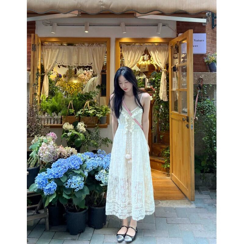 優しいスタイルの電話中空レースサスペンダードレス女性春 2024 新しいスタイルの気質ウエスト痩身 A ラインスカート スプリング 春物 Aライン 0921975835248299