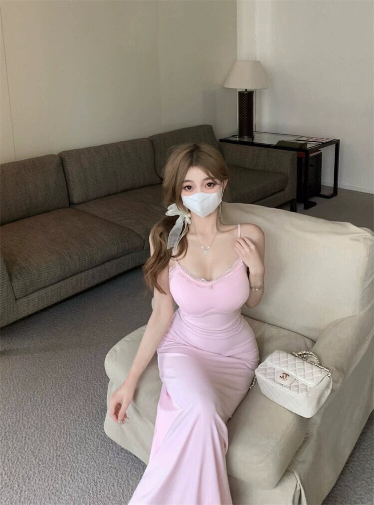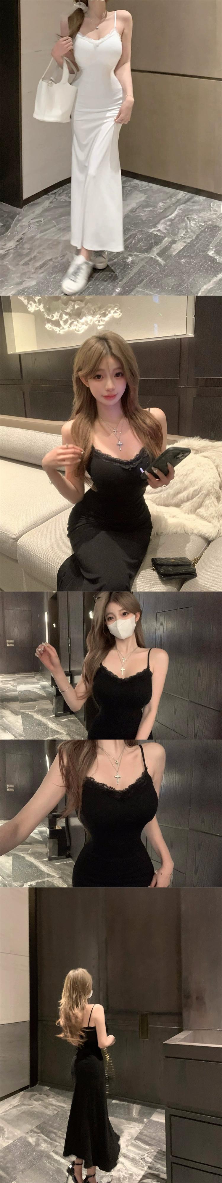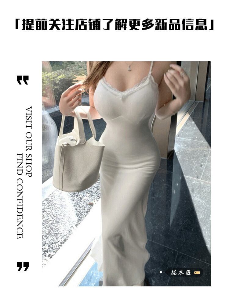 優しくセクシーなレース継ぎサスペンダードレス、純情風白妖精スカート、ウエストバッグお尻フィッシュテールロングスカート ホワイト ピュア 0921915631059507
