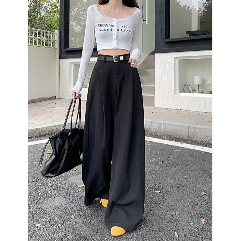 エドハイウエスト痩身ドレープカジュアルパンツ女性春 2024 新しい多用途ルーズ痩身ワイドレッグスーツパンツ スプリング 春物 0921975846553355
