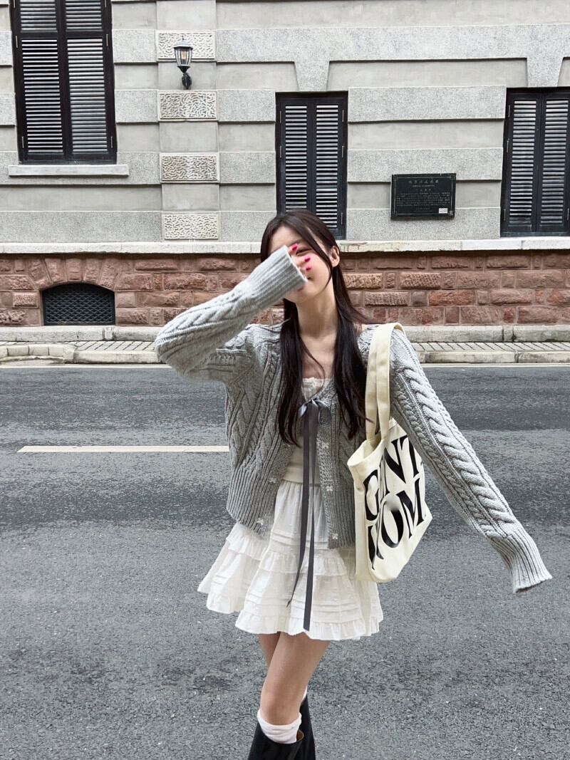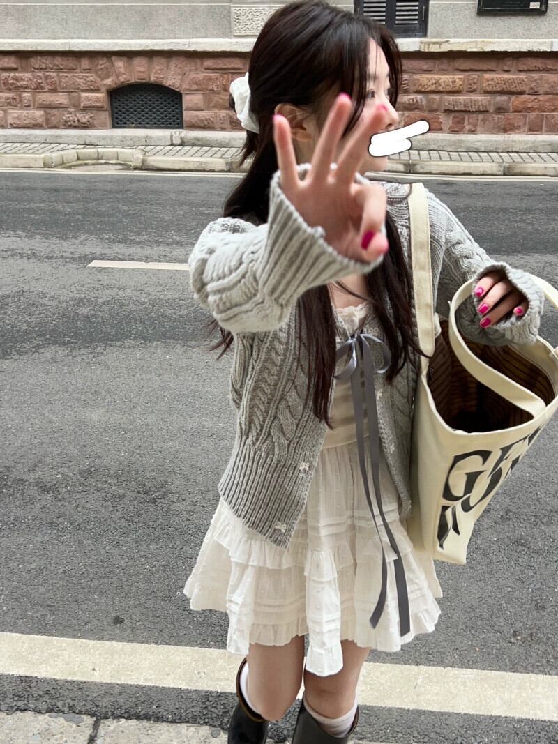 甘いスタイル多用途ファッションスーツ女性 2024 春の新作グレーカーディガンキャミソールスカート 3 点セット 大人ガーリー スウィート キュート カジュアル スプリング 春物 0921941173639379