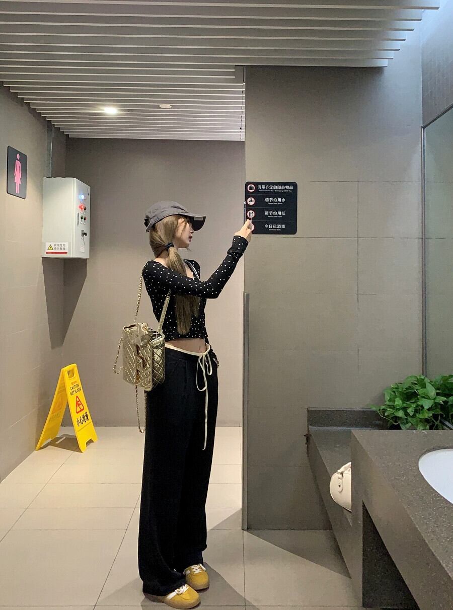 スーツ ショート水玉カーディガン サスペンダー付き レディース 2024春新作 ハイウエスト ワイドパンツ 3点セット スプリング 春物 0921929965002251