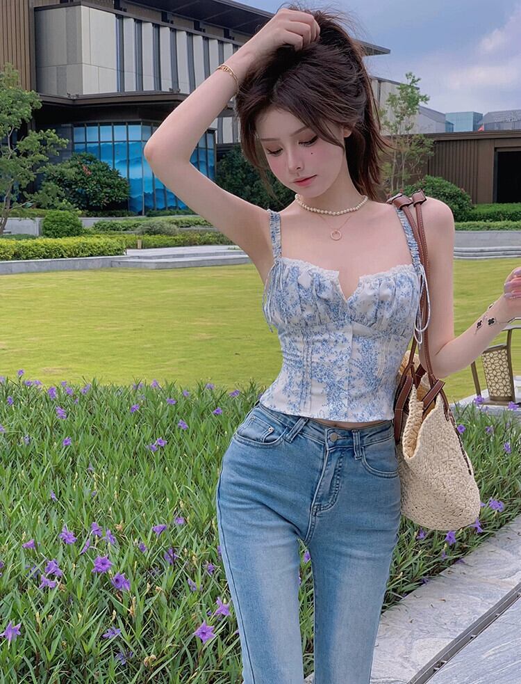 フレンチスタイルの花柄キャミソールレディース2024春新作万能ショートスタイルスリムスリムノースリーブトップストレンド スプリング 春物 0921964030945517