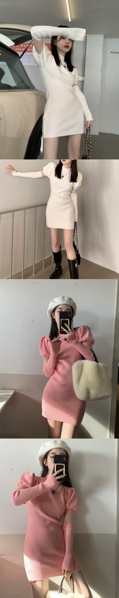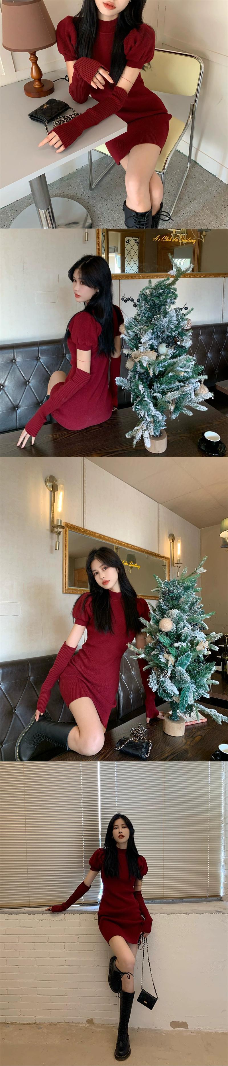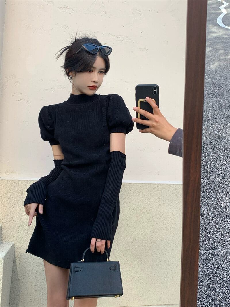 気質ハーフリーダーパフスリーブドレスレディース2024年春スリムフィットボトリングニットスカート スプリング 春物 0921928876910650