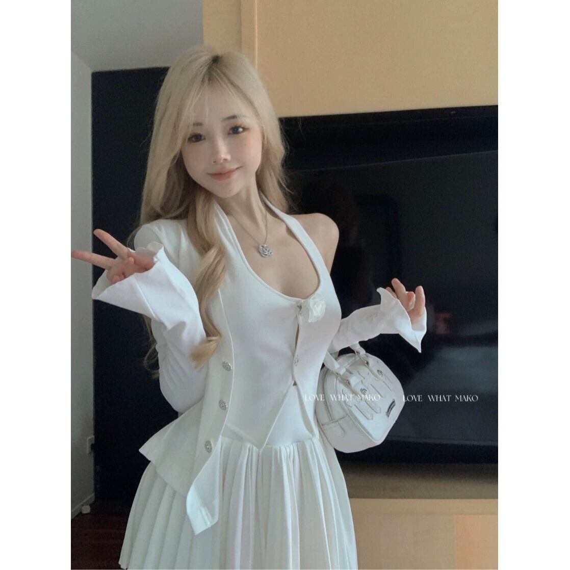 フレンチスタイルのファッションスーツの女性の春 2024 新しいニットカーディガンベストトッププリーツスカート 3 点セット スプリング 春物 0921964917164670