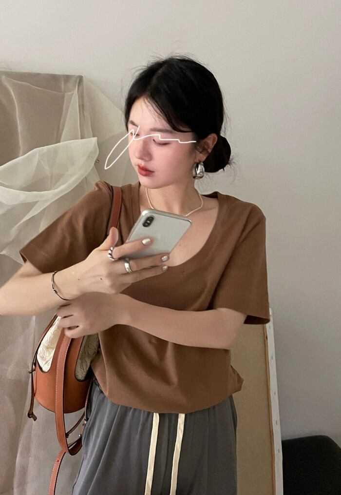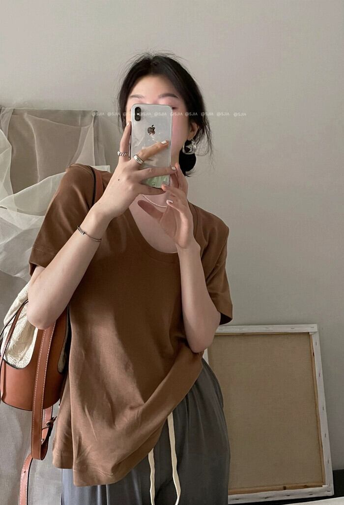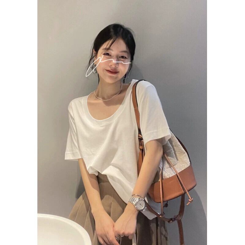 ニッチピュアコットン半袖 Tシャツレディース夏 2024 新しい多用途ルーズスリミングボトリングシャツトップスイン サマー 夏物 0921925078134237