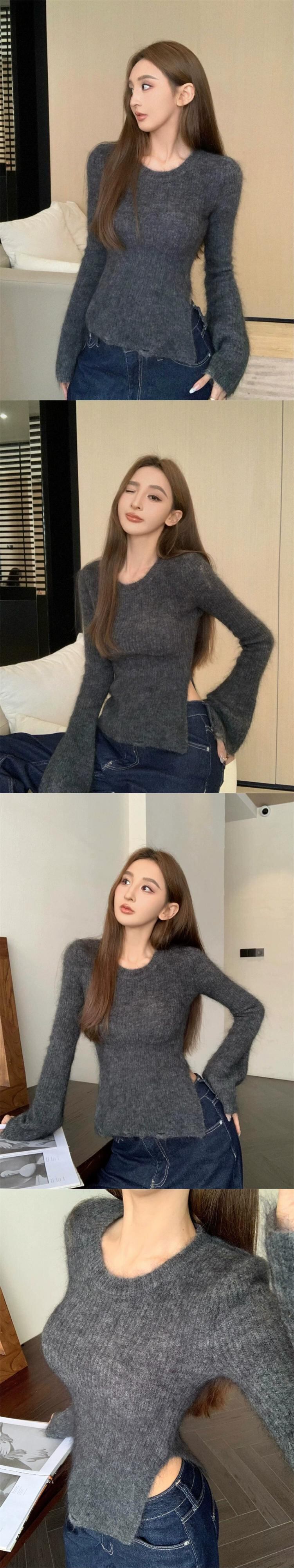 エイブルデザイン 長袖セーター レディース 2024年春新作 スリットスリム スリムラウンドネックトップ ロング スプリング 春物 Oネック 0921921515629821