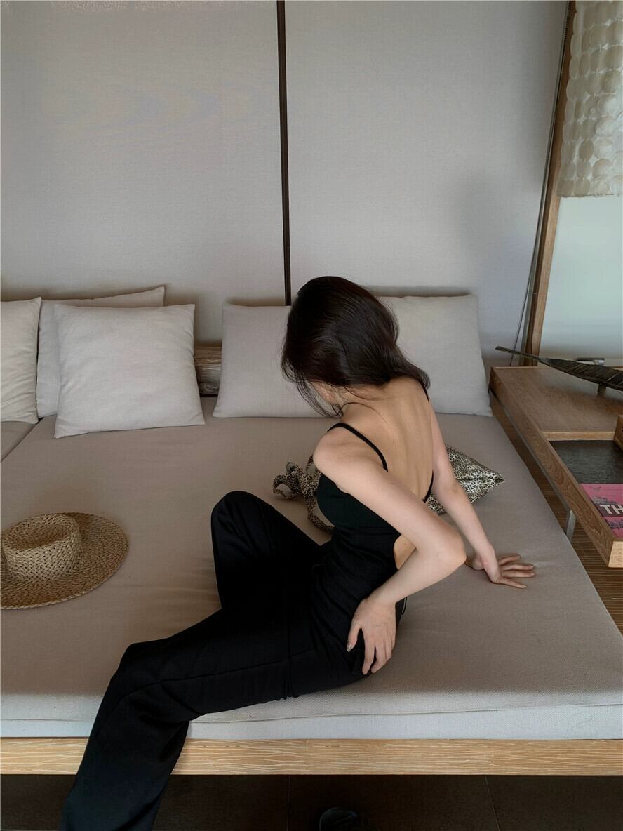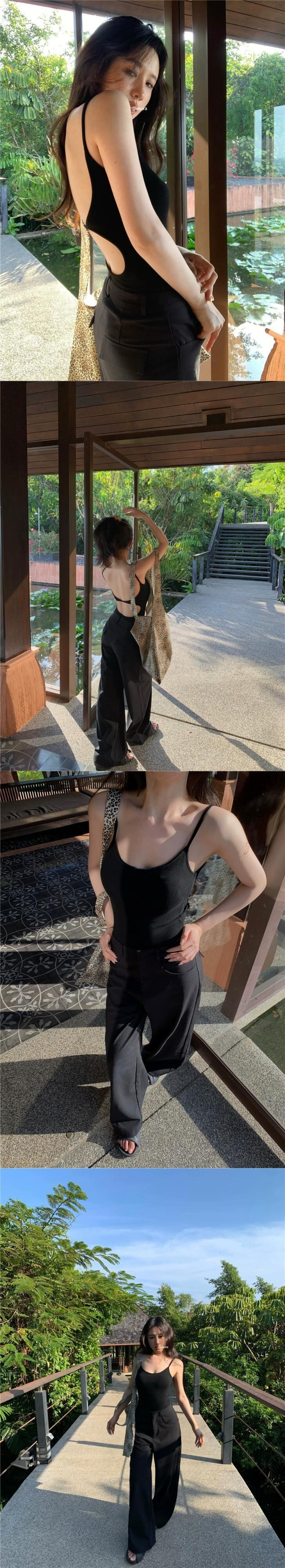 アメリカインセクシーな背中の開いたベスト女性春 2024 新しいスリムフィットワンピースサスペンダーボトミングシャツ スプリング 春物 0921917905394033