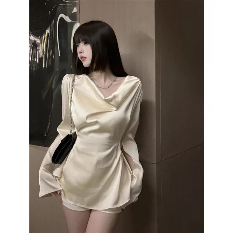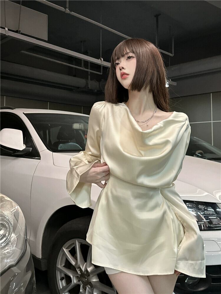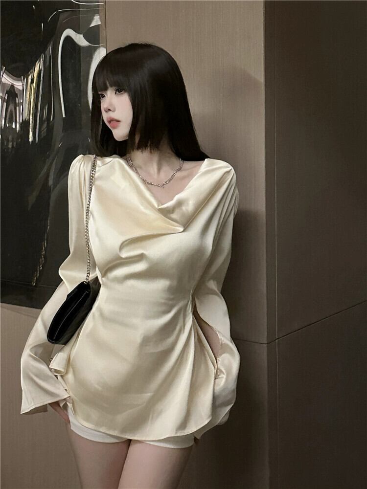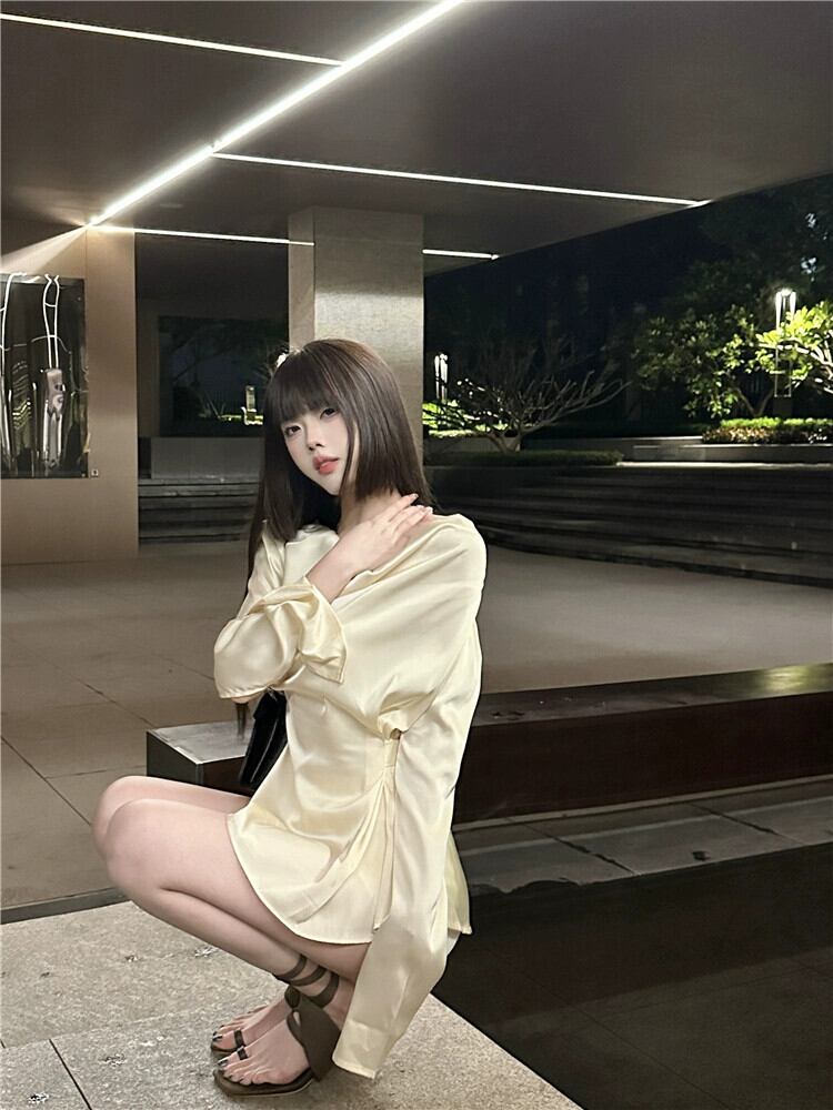 フランスのおしとやかな気質のスイングカラーデザインシャツ女性の 2024 年の夏の新しいベルスリーブウエストシックなトップ サマー 夏物 0921951122306355
