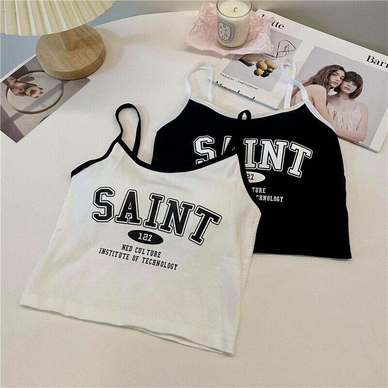 レタープリントキャミソールレディース 2024 年夏新作スリムフィットインナーショートアウタートップ サマー 夏物 0921959099312371