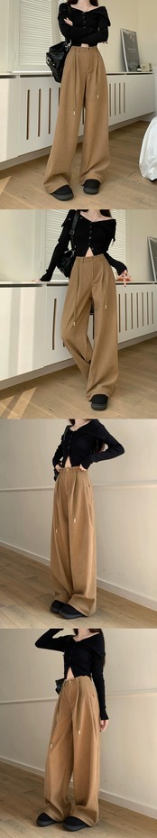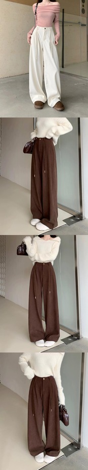 ベルベット肥厚ハイウエスト巾着カジュアルパンツ女性 2024 春の新ルーズ痩身ワイドレッグパンツフロアレングスロングパンツ スプリング 春物 0921948493069713