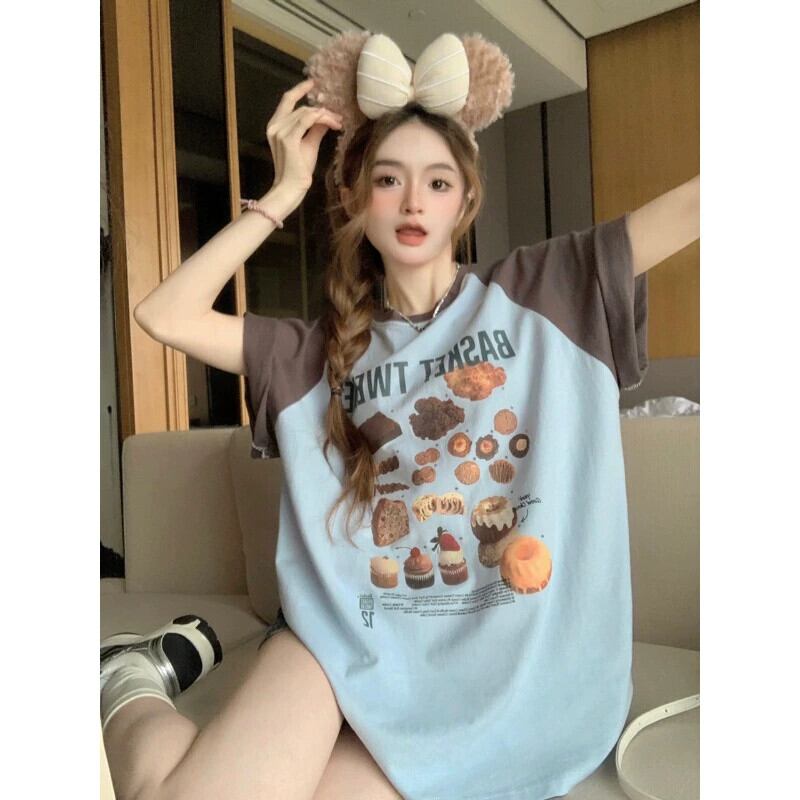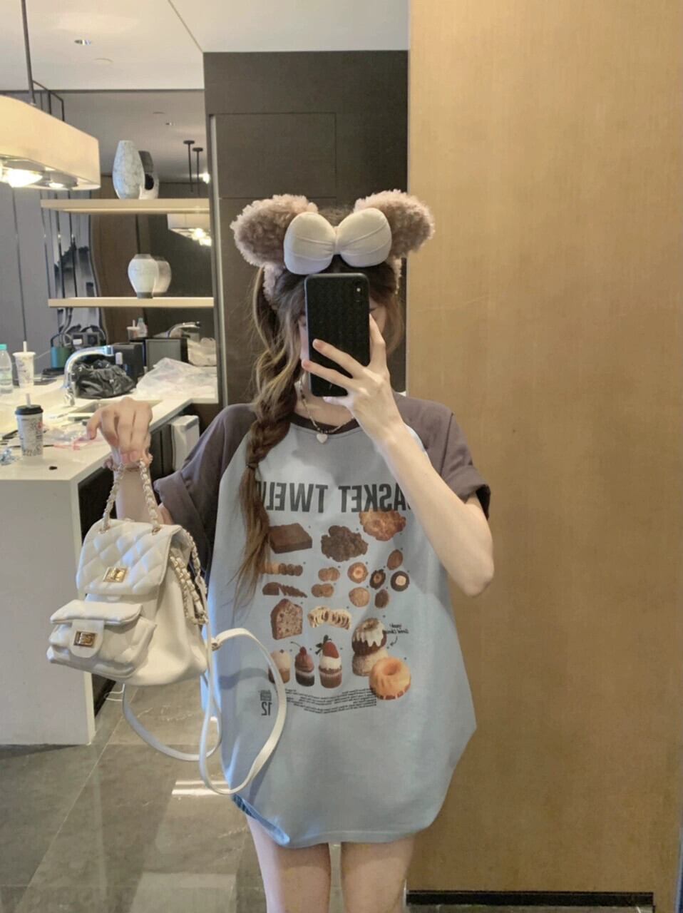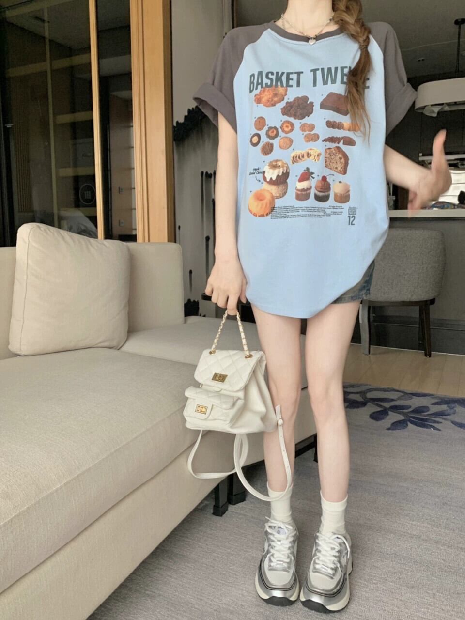 インかわいいプリントラグラン半袖 Tシャツ女性の夏の 2024 新デザインニッチルーズミッドレングストップ 大人ガーリー スウィート キュート カジュアル サマー 夏物 0921977635078872