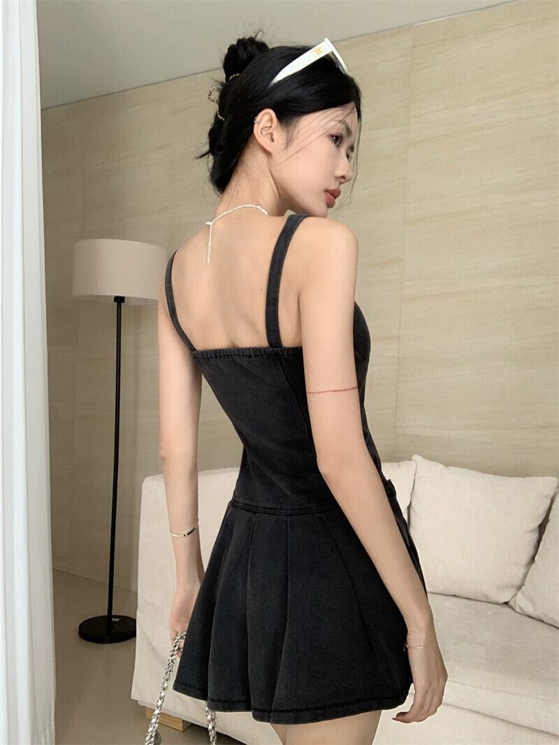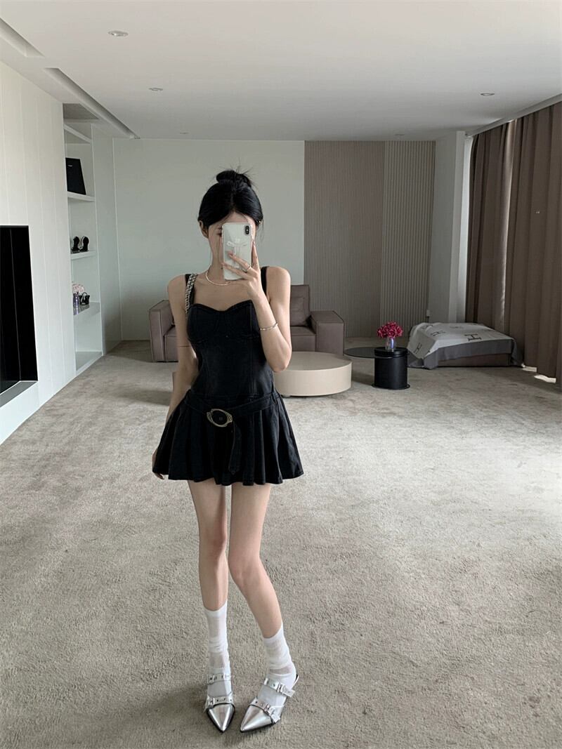 甘くてクールなスタイルのデニムチューブトップサスペンダードレス女性の夏 2024 新しい気質痩身ショートスカートトレンド 大人ガーリー スウィート キュート カジュアル サマー 夏物 0921940123210832