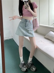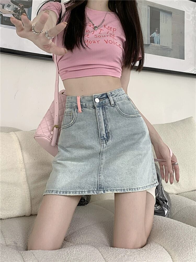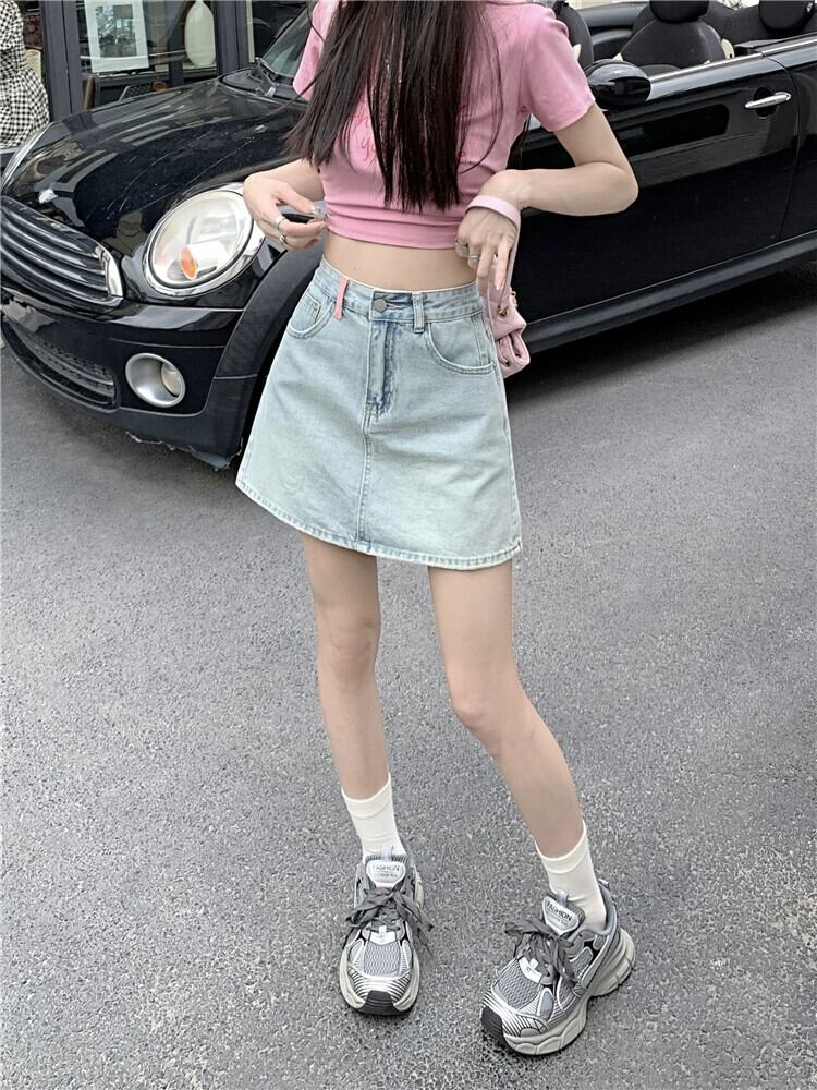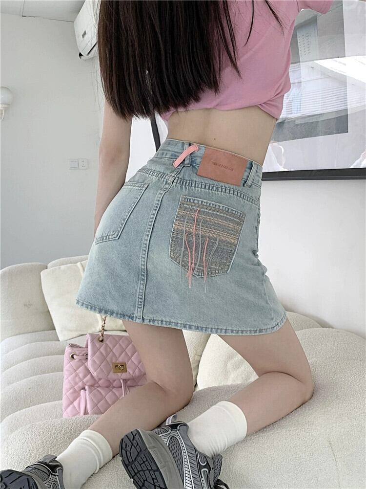 ホットレトロウォッシュデニムスカートレディース春夏ニッチデザインポケット露出防止ヒップスカートスカートスカート スプリング 春物 サマー 夏物 0921950594410357