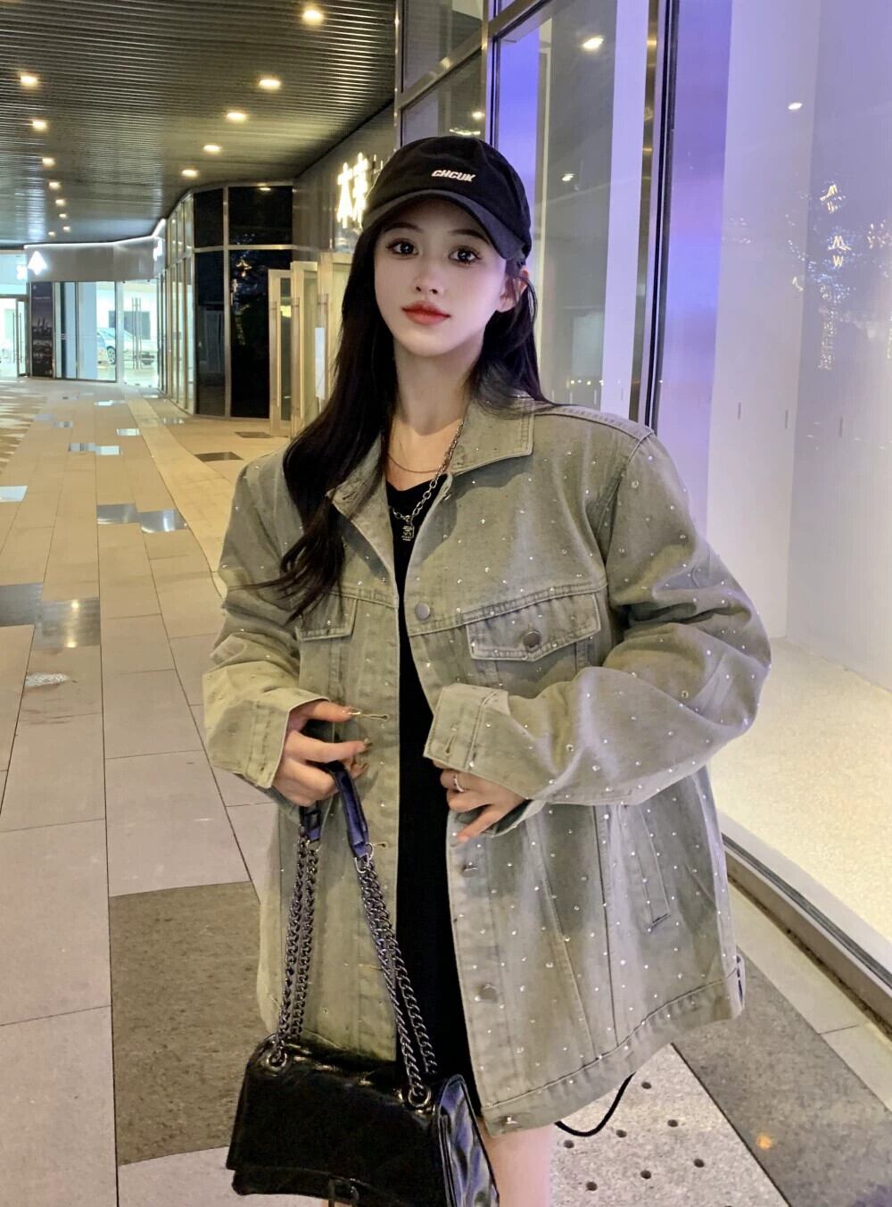 ニッチデザイン長袖デニムジャケット女性 2024 年春の新しい多用途ミッドレングスルーズ痩身トップトレンディ ロング スプリング 春物 0921916318694924