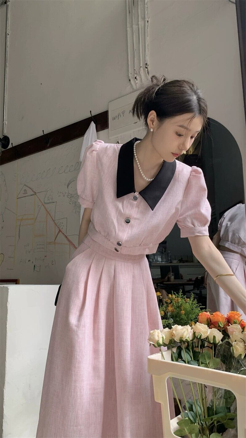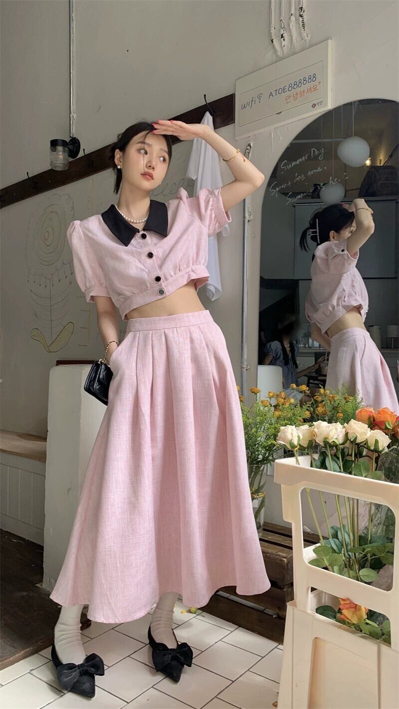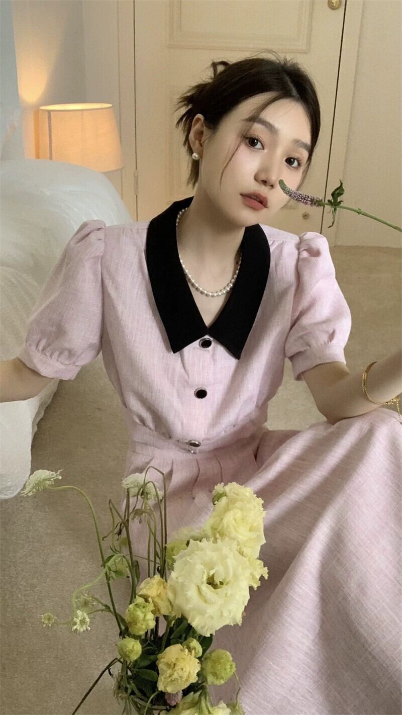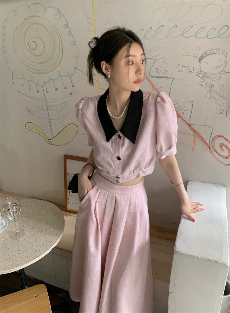 スタイル小さな香りスーツスカート女性の夏の 2024 新しいショートポロカラーシャツハイウエストスカート 2 点セット ハイウェスト サマー 夏物 S921968217813928
