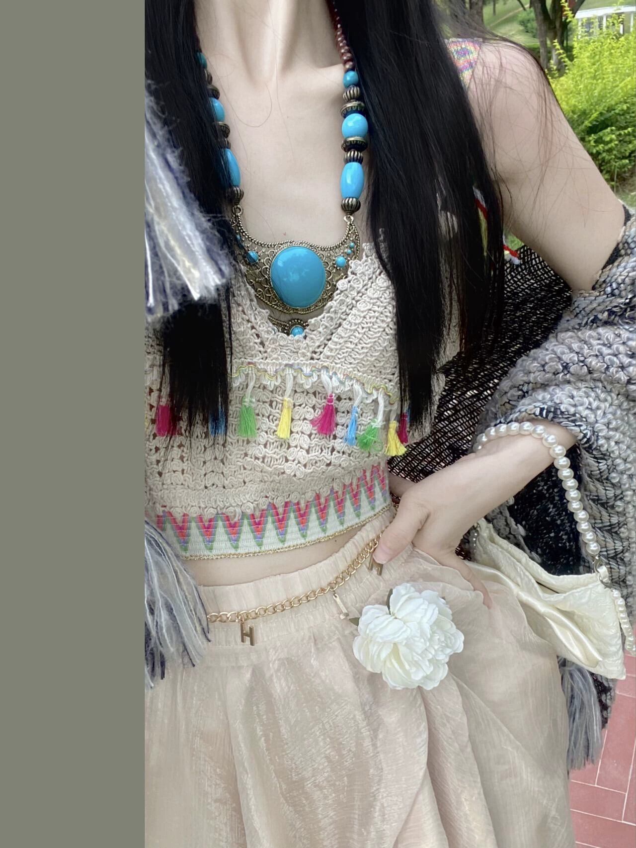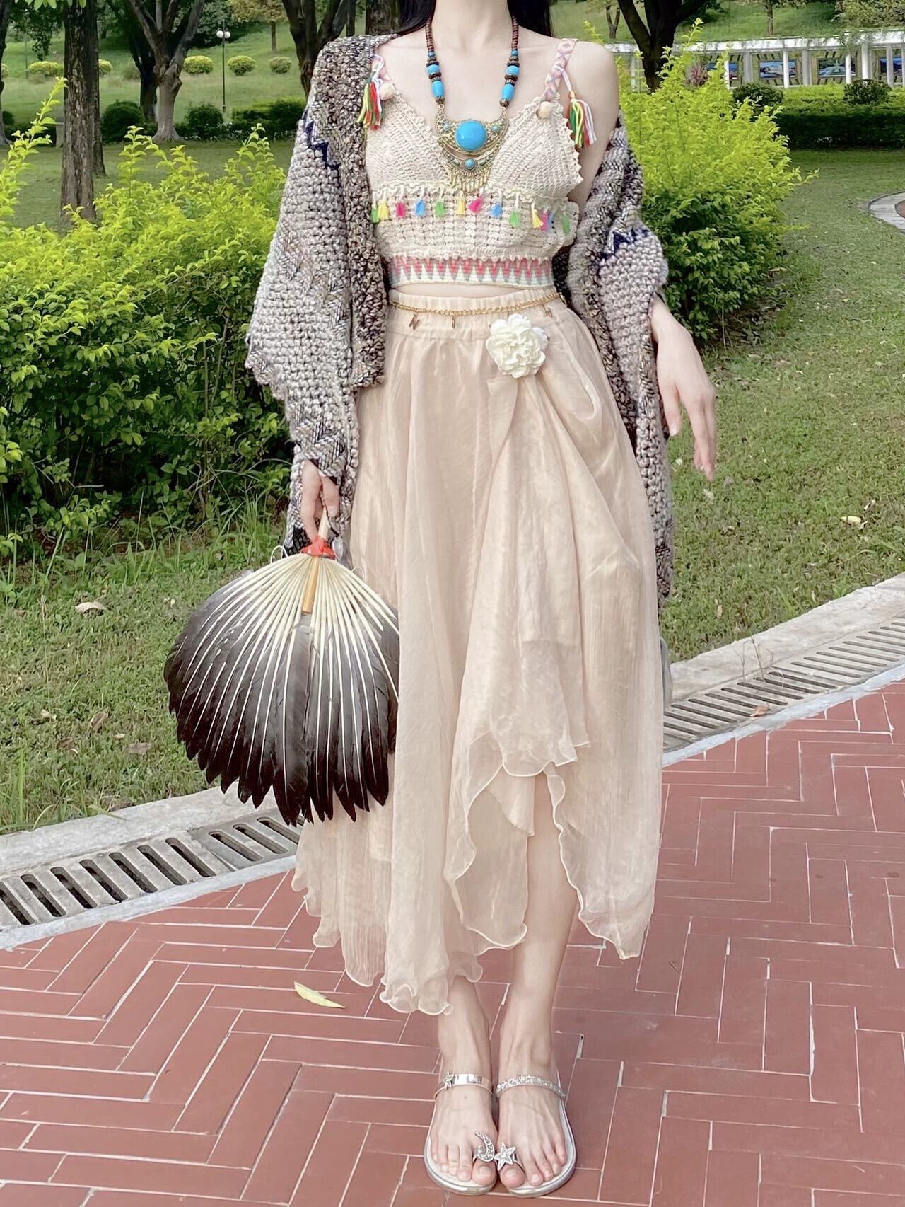 レトロエスニックスタイルスーツ女性 2024 春の新作ニットショールサスペンダーとインナースカート妖精 3 点セット スプリング 春物 S921973905908452