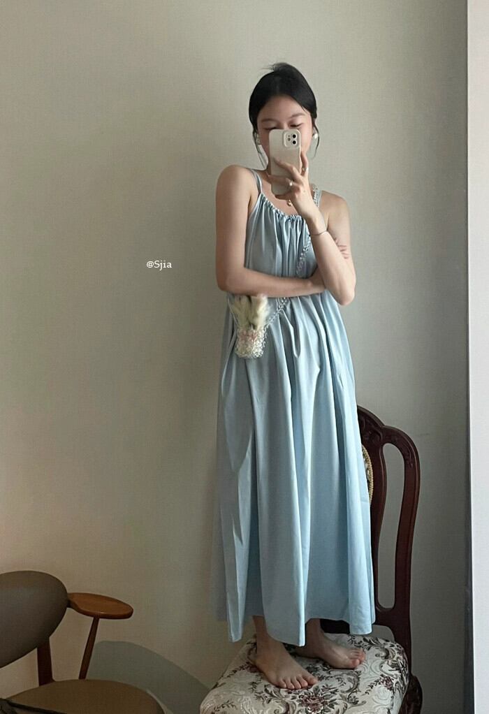 ED ライトブルーポケット巾着サスペンダードレス女性の夏の 2024 新しいルーズでスリムなミッドレングススカートトレンディな サマー 夏物 S921940470676001