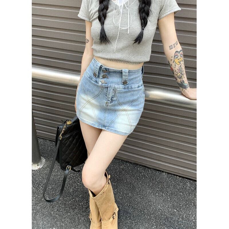 レトロなデザインのハイウエストデニムスカートの女性の夏の 2023 新しいスリムフィットスタイルのヒップハグショートスカート サマー 夏物 S921968574490609