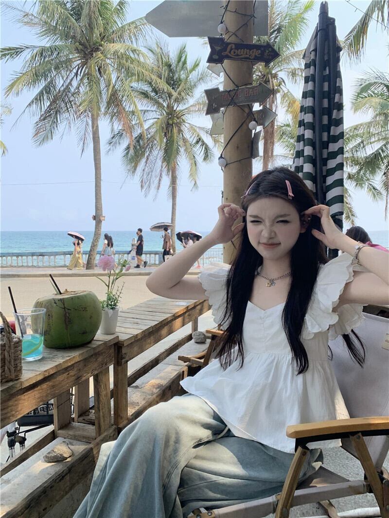 甘いスタイル白フライング スリーブ シャツ女性の 2024 夏の新しいスタイルのバックタイ ショート スリム スリム シャツ ホワイト 大人ガーリー スウィート キュート カジュアル サマー 夏物 S9219564848070