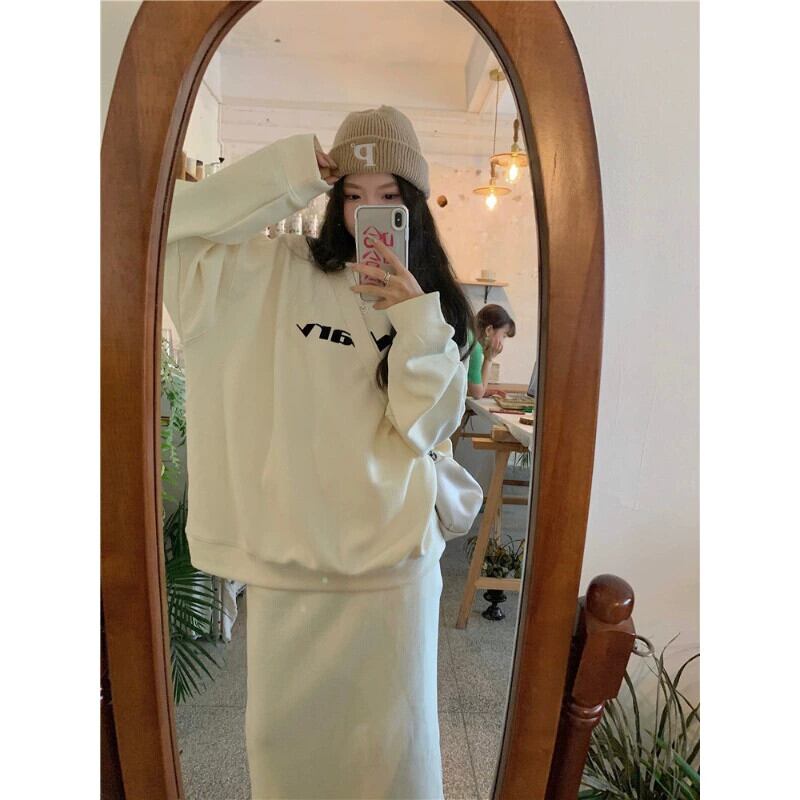 スポーツスーツ女性 2024 春の新長袖ルーズスウェットシャツスリムミッドレングススカート 2 点セット ロング スプリング 春物 S921966528135099