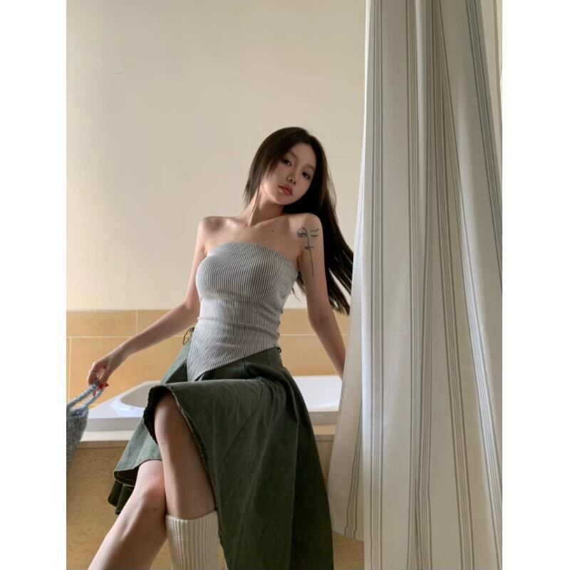 -ウエストイレギュラーデニムスカートレディース2024年夏新作スリムミッドスカートレトロアメリカンAラインスカート サマー 夏物 S921951488313230