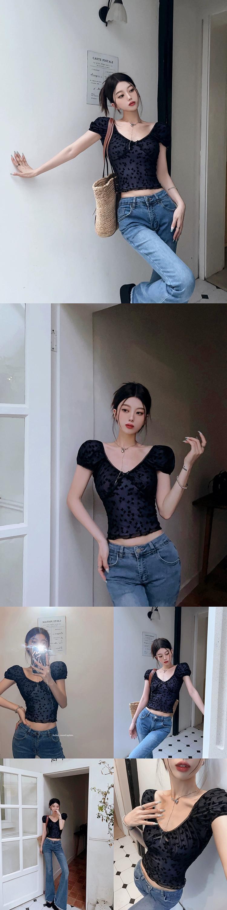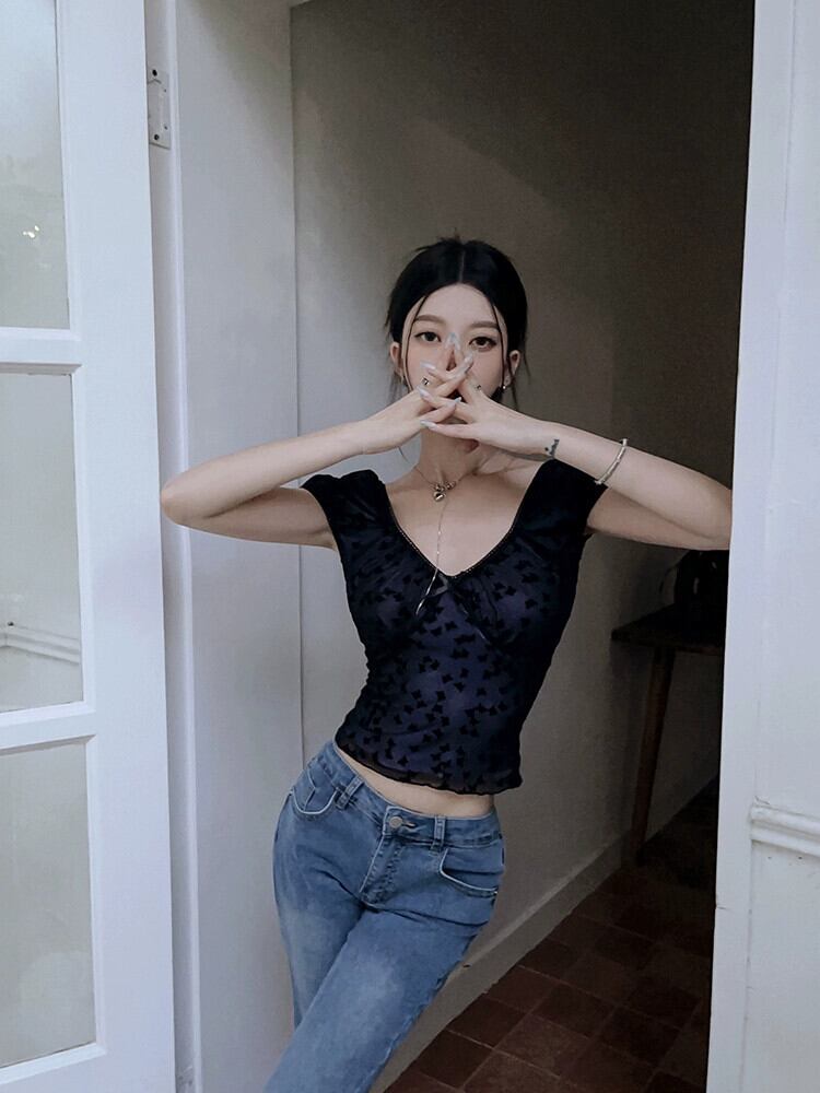 アメリカンスタイルバタフライメッシュ半袖 Tシャツ女性の夏の 2024 新デザインニッチスリム V ネックトップ サマー 夏物 Vネック S92199754867637