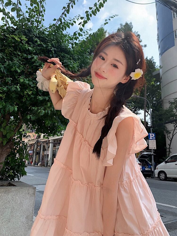 穏やかな風飛行袖耳縁ドレスの女性の夏 2024 新しいスタイルルーズ痩身アウターショートスカート サマー 夏物 S921977897562681