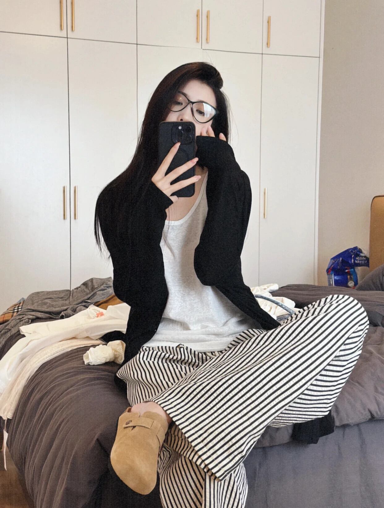 色:カーディガン,ベスト,ストライプパンツ
