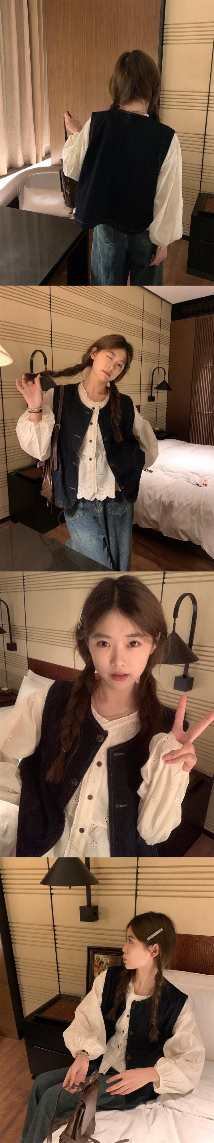 色:ベージュの刺しシャツ,カウボーイベスト