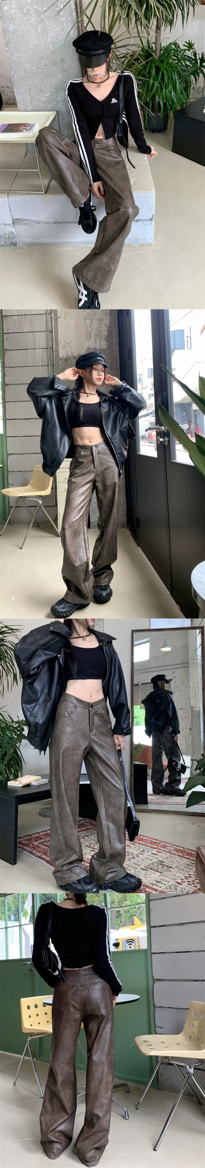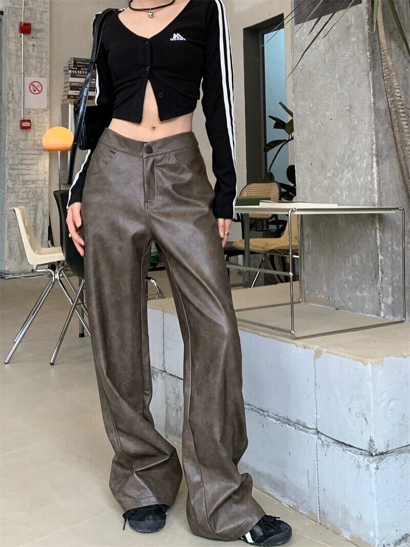 アメリカンレトロブラウンブラウンパンツ女性の夏 2024 レザーパンツ多用途ウエストスリム床拭きパンツ サマー 夏物 S921991384843558
