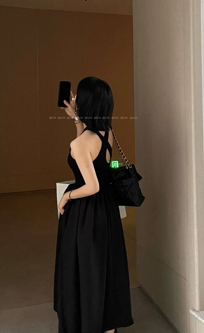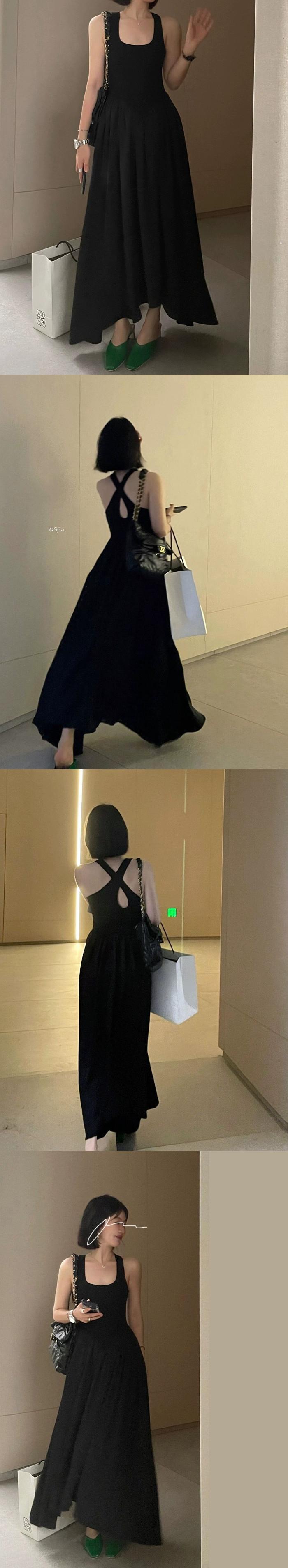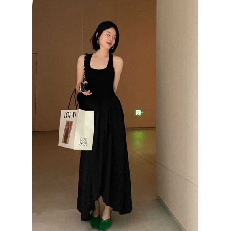 フレンチシックな無地の多用途サスペンダードレス女性の夏 2024 新しいスタイルのバッククロスデザインウエストロングスカート サマー 夏物 ソリッドカラー S921951165649437