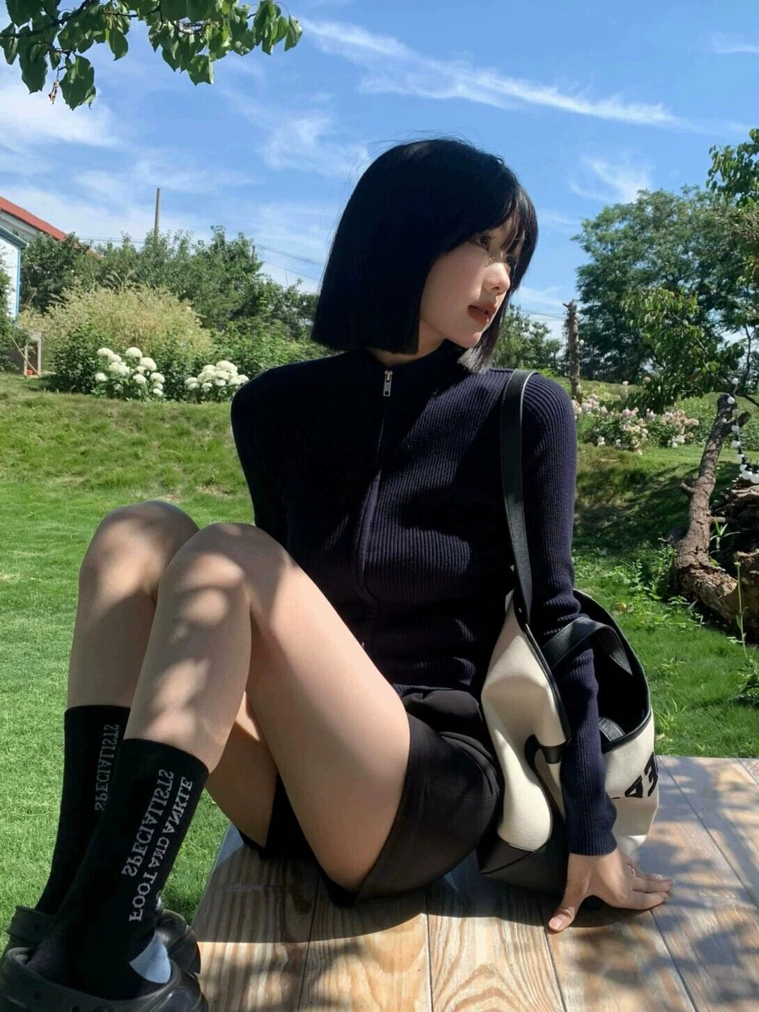レトロネイビーハーフタートルネック長袖セーター女性春 2024 新しいスリムフィットジッパーセーターカーディガン ロング スプリング 春物 S92198085842501
