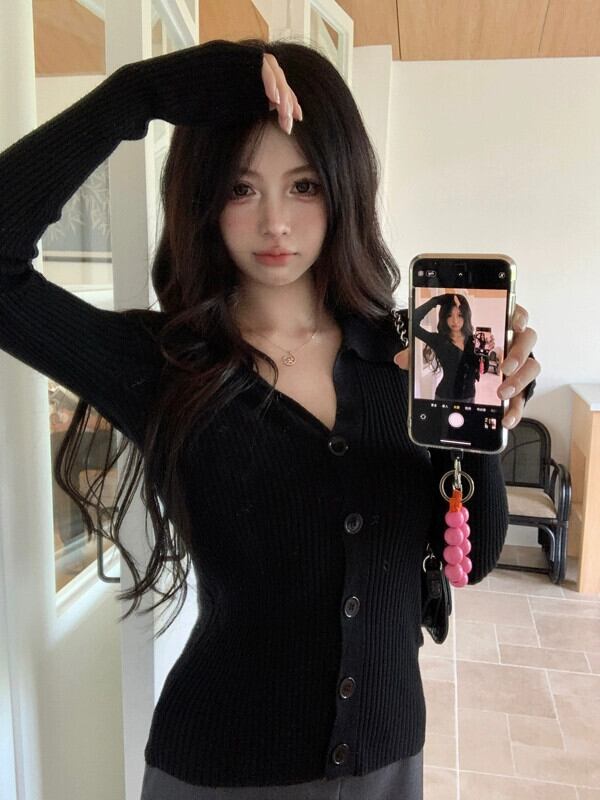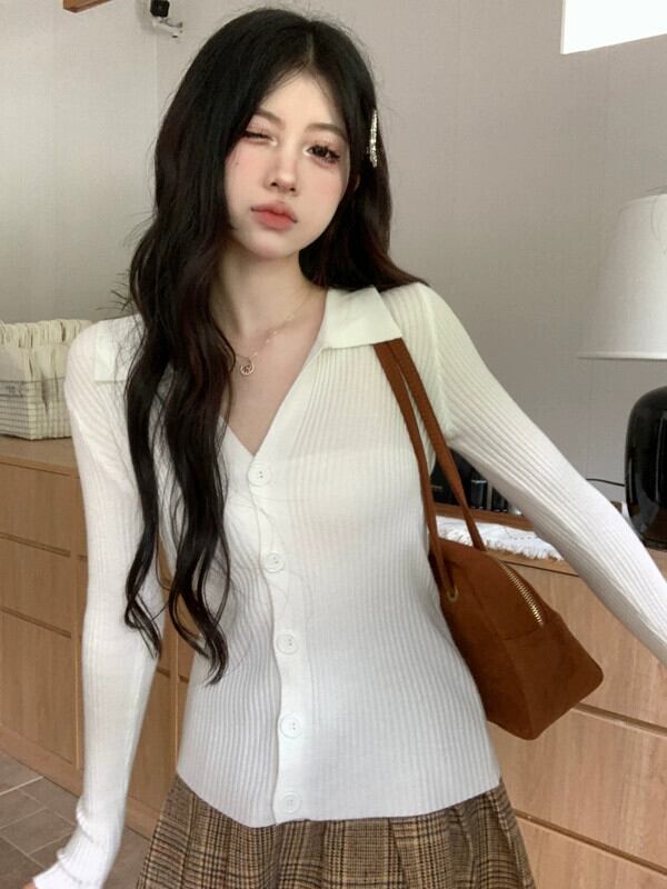 ソフトブルーラペルピット長袖セーター女性春 2024 新しい純粋な欲望スリムショートカーディガントップ ロング スプリング 春物 ピュア S921984150096649
