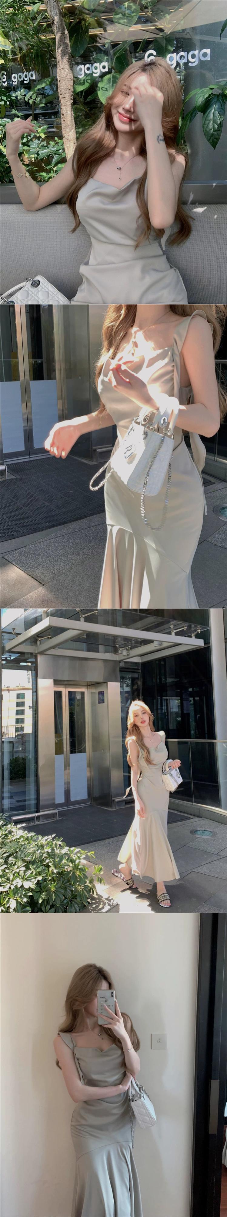 セクシーなホットガールサテンスイングカラーサスペンダードレス夏2024スタイルスリムフィットフィッシュテールスカート サマー 夏物 S921966063242967