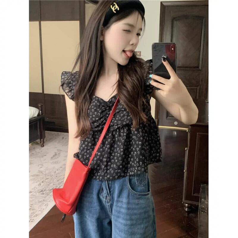 甘い小さな飛行袖 V ネックシャツ女性の夏の 2024 新しいショートスリムスリムシャツアウタートップ 大人ガーリー スウィート キュート カジュアル サマー 夏物 Vネック S921966529416488